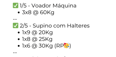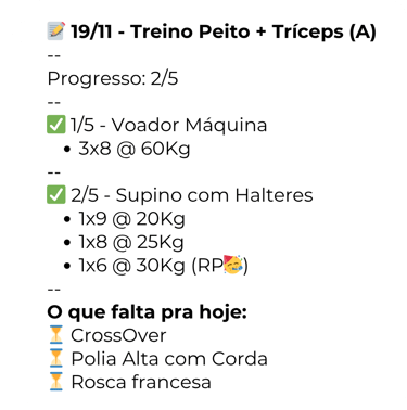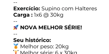 Mande uma mensagem contando seu treino por texto ou áudio.